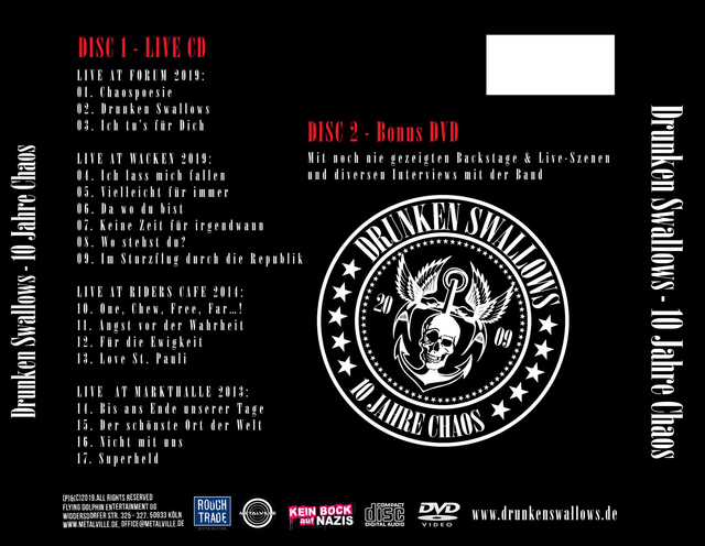 Das beste aus 10 Jahren Drunken Swallows Bandgeschichte Live auf einer CD. Inklusive DVD mit noch nie gezeigten Backstage- & Live-Szenen und diversen Interviews mit der Band.