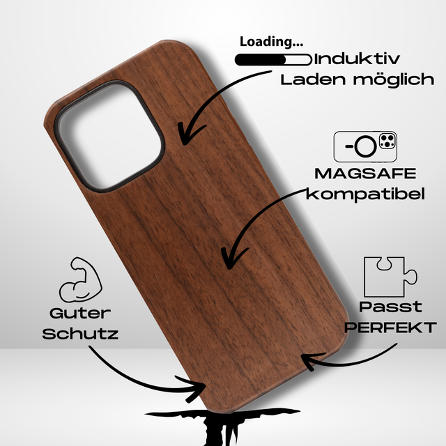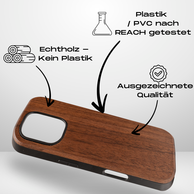 Da Holz ein Naturprodukt ist, kann es durch seine Maserung und Farbe von Hülle zu Hülle variieren. Deshalb können die Hüllen immer anders aussehen. Die gezeigten Bilder sind Beispielbilder. Verschickte Modelle, können von den Bildern abweichen.